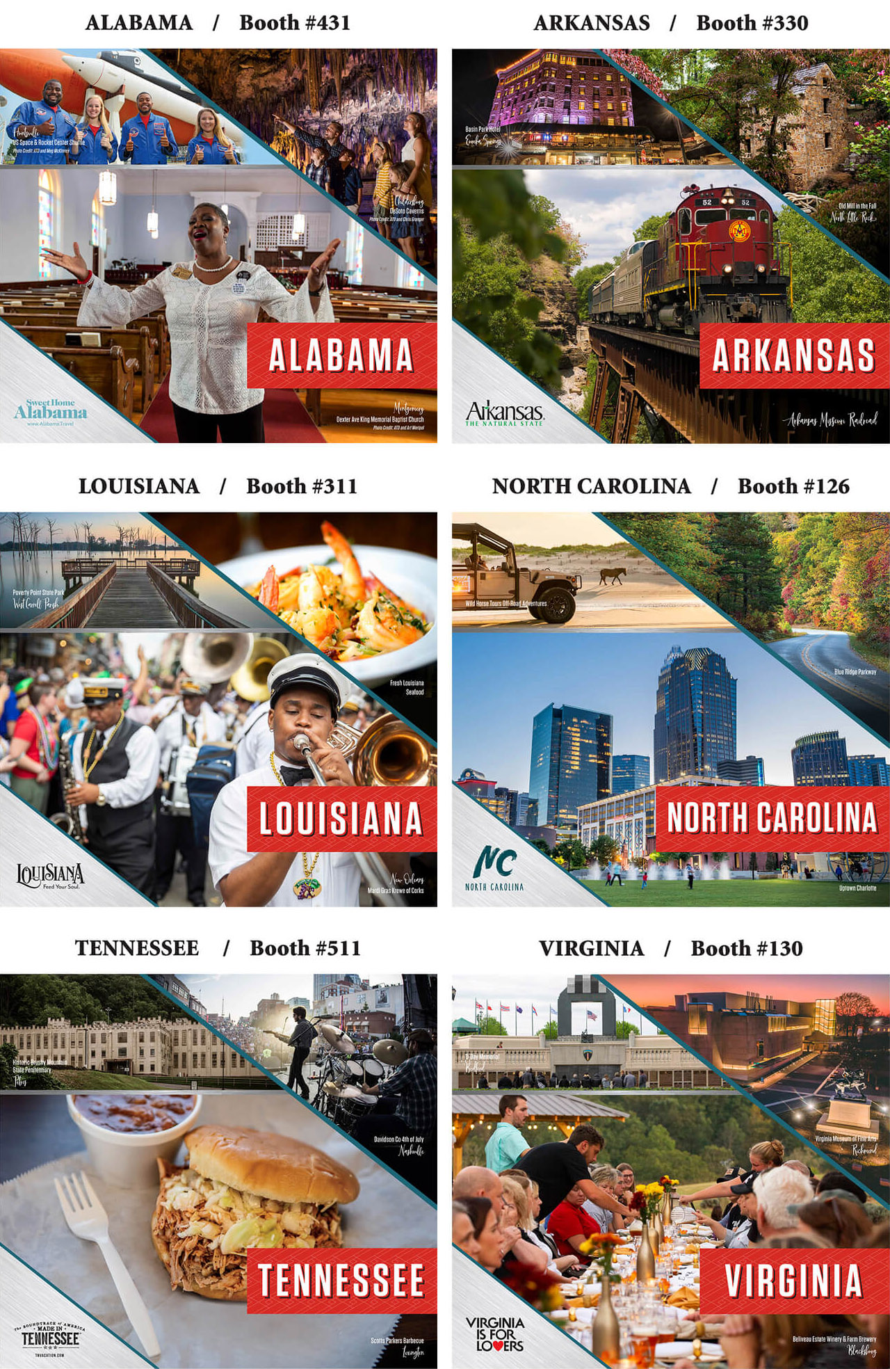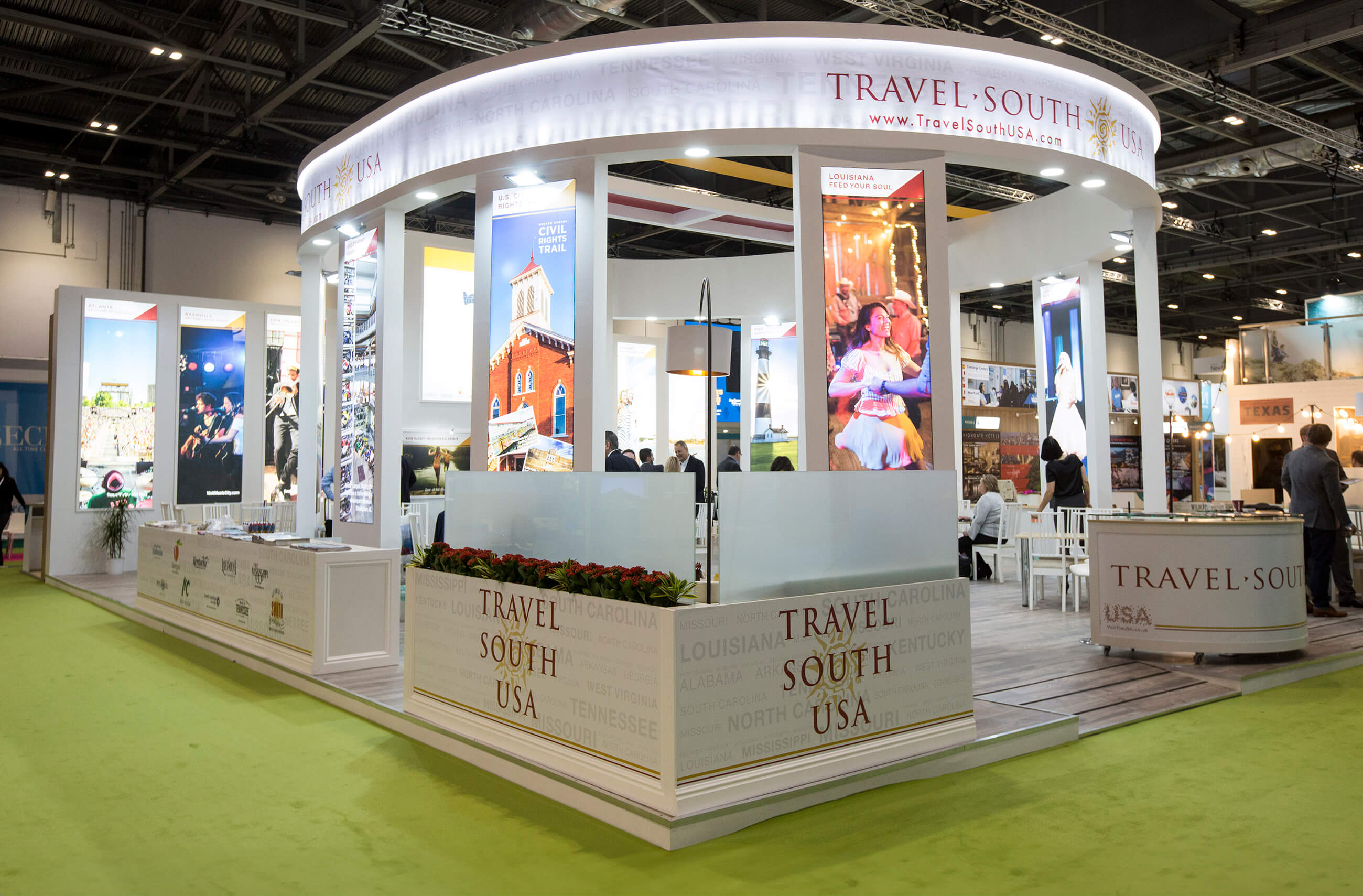 Client: Travel South USA is the official regional destination marketing organization for the Southern United States. This non-profit organization promotes travel to and within its member states. Travel South USA serves as an information source for journalists, tour operators, retail travel agents, and other travel professionals. Since 2007, we’ve worked with Travel South USA to develop materials for the trade shows they host or attend, both domestically and internationally.